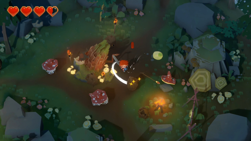 You go through a couple of different enemies. Their attacks are simple enough to avoid, though. For some of them, you can dodge or simply step out of the way. The movement itself is smooth, and I didn’t find anything laggy or janky. The game uses a heart system that you can upgrade: Some hits are half a heart, while harder attacks from enemies could knock down a heart and a half, so watch out.